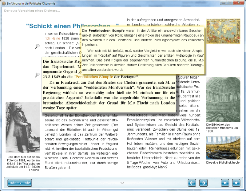 Wer will, kann sich mit einem Mausklick auf jede Lupe weitere Informationen zum Text holen.